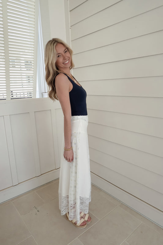 Lace Trim Mixed Media Patchwork Maxi Skirt