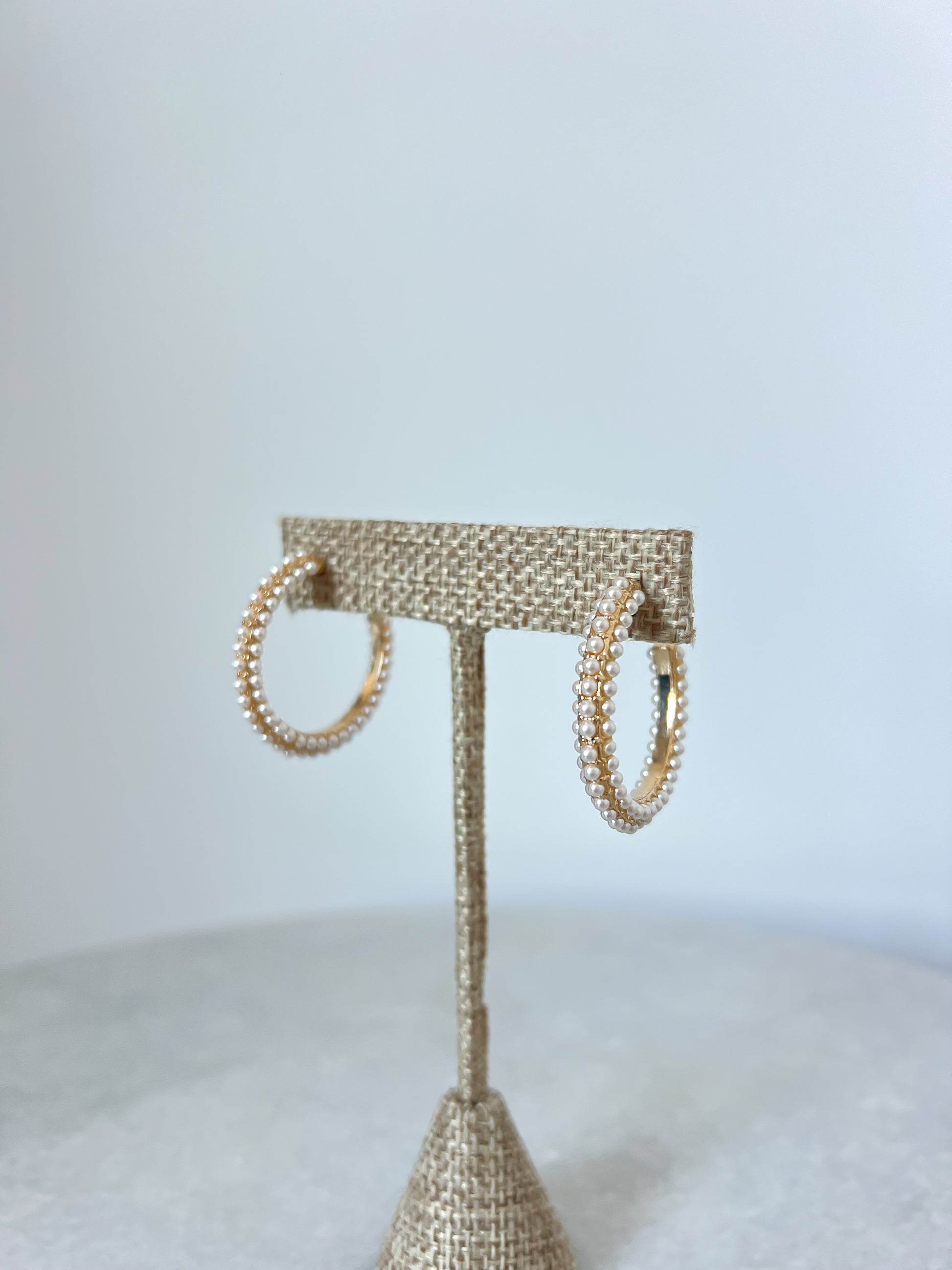 Expertly crafted with intricate beading, these Beaded Hoop Earrings add a touch of elegance to any outfit. The lightweight design makes them comfortable to wear all day, while the stunning details lend a unique and stylish look. Elevate your jewelry collection with these must-have earrings.