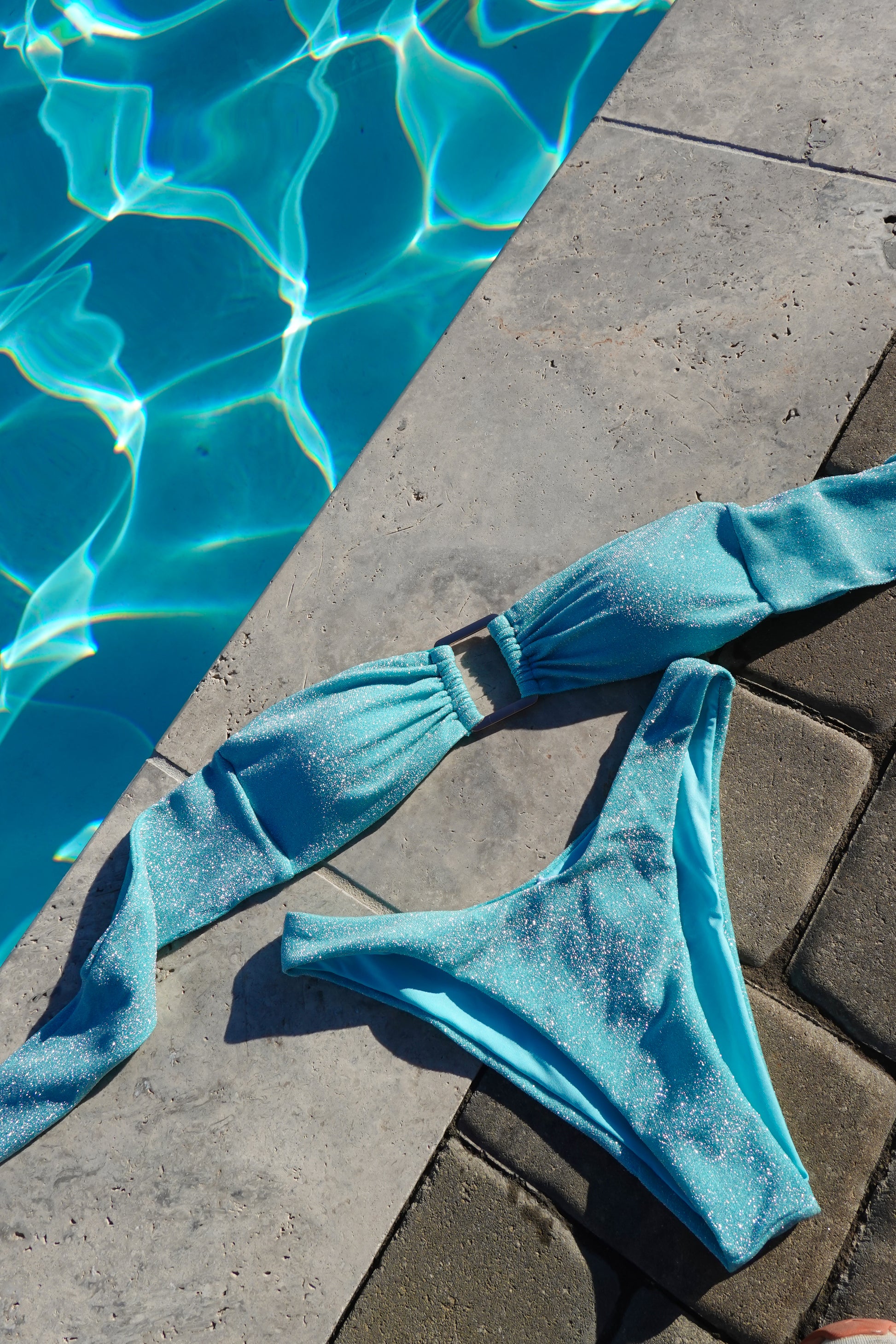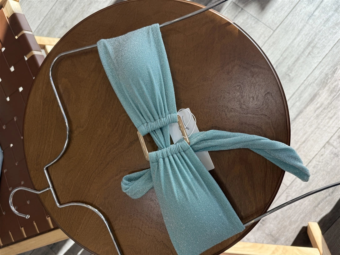 Make a splash this season in the Bora Bikini Set, where sparkle meets comfort. This two-piece ensemble features a shimmering fabric that catches the light beautifully, paired with a striking gold center detail for added glamour. The stretchy material moves with you for all-day wear, while the adjustable tie back ensures a personalized fit. Perfect for beach days or poolside moments, this set combines style and practicality in one stunning package.