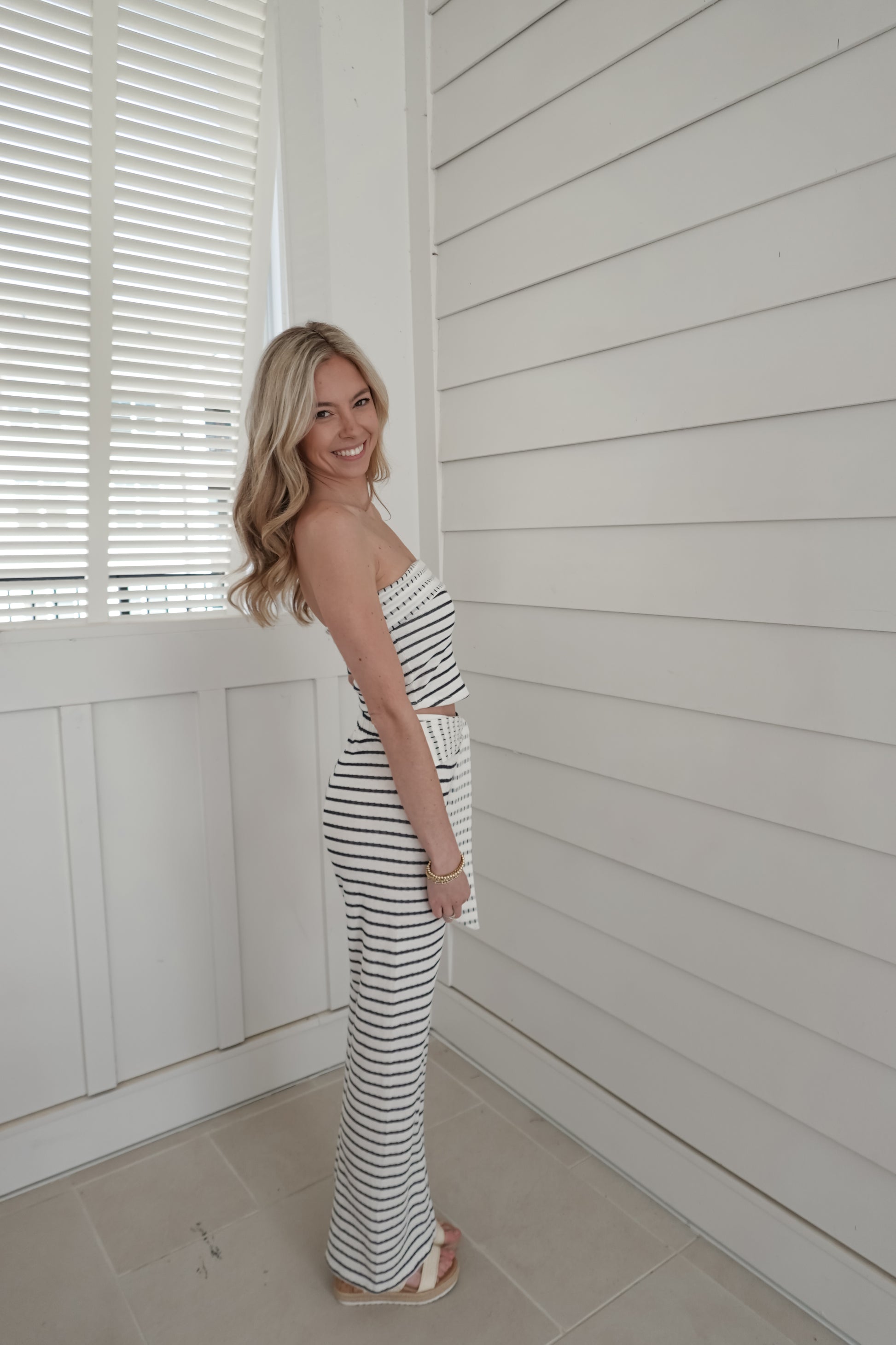 The Chloe Low Rise Striped Knit Pants feature a design that coordinates seamlessly with the Chloe top, ensuring a cohesive look. With a fit that runs true to size, these pants offer comfort while maintaining a tailored appearance suitable for various occasions.