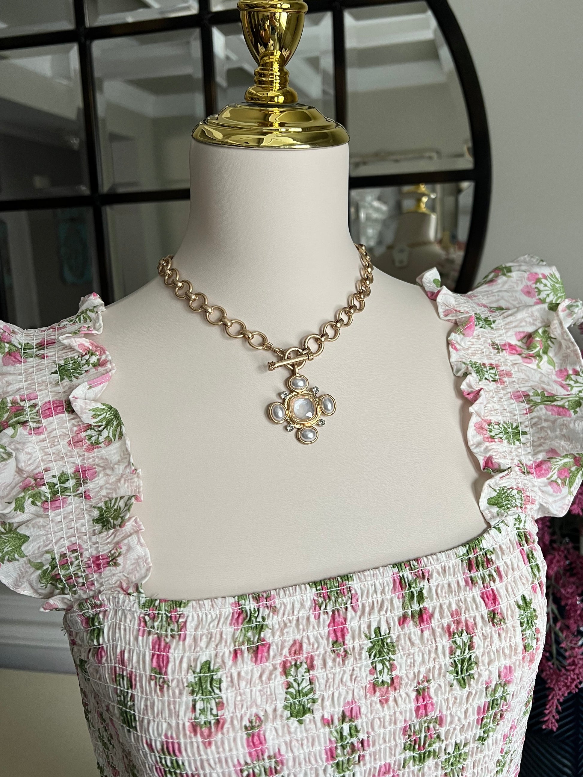 This Stone Cross Statement Necklace is a stunning piece of jewelry that will add a touch of elegance to any outfit. Made with a beautiful stone cross pendant, this necklace is perfect for those who want to make a statement.